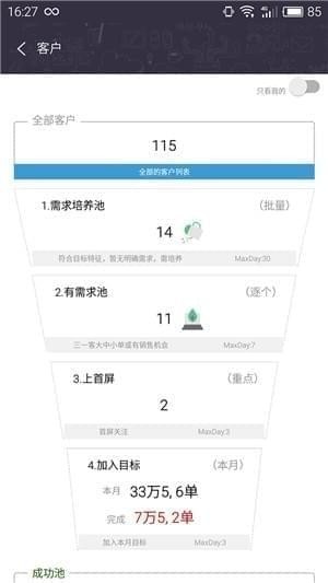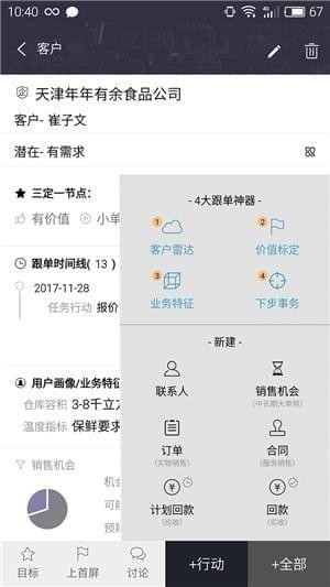 客户视图超级界面:数据全,跟踪记录全复盘,业务信息都可编。目标、上首屏任你选,同时还可有讨论。