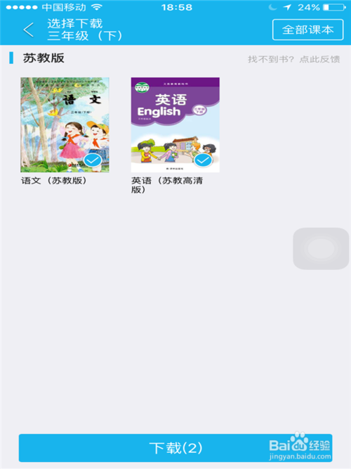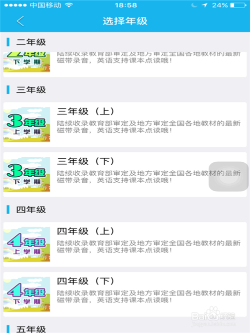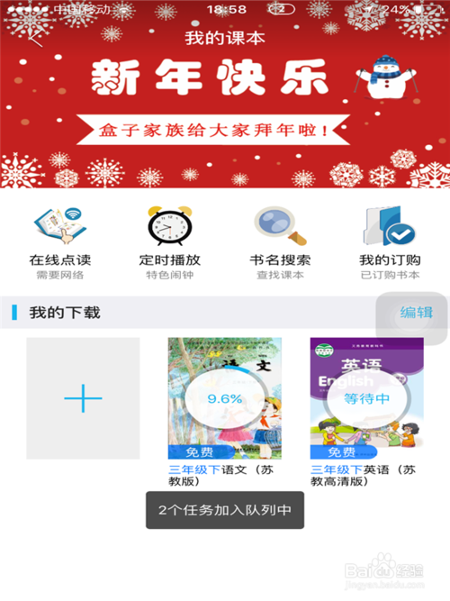 点击小学课本点读,我的下载有一个十字符号,然后选择自己所学的版本,蓝心以苏教版为例,点击苏教版,进入下一个画面,根据自己的年级选择。