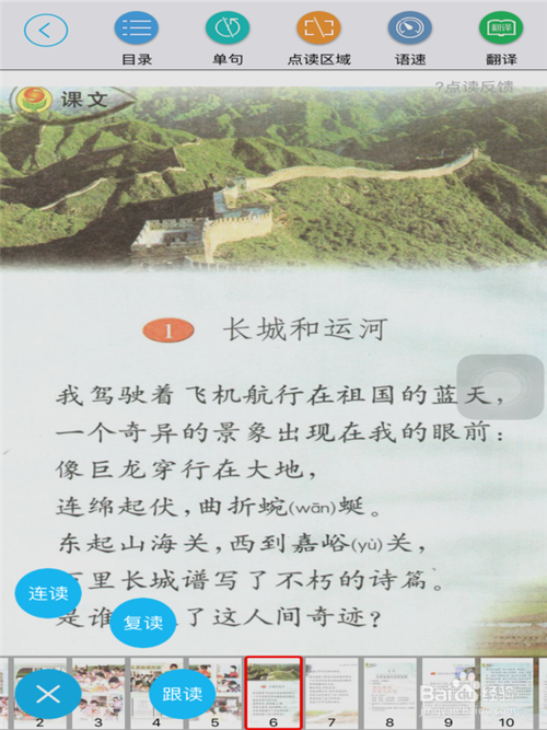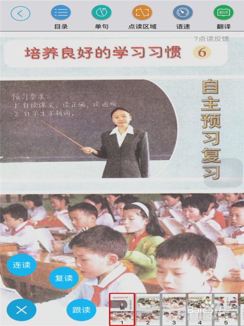 点读画面上也有目录、连读、复读、跟读的功能,小朋友们可以根据自己的需求进行操作哦。