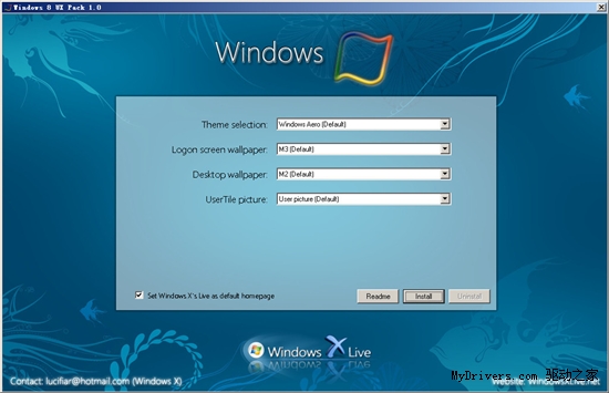 在windows 8正式面世之前,我们还会看到更多的类似工具,今天又一款windows 8主题小工具——windows 8 ux pack来到了我们面前。这款由windowsxlive网站自制的windows 8主题工具可以非常简单的将windows 8界面作为一款可选主题安装在windows 7系统之上,界面仿真度以及安装过程都是我们已经见过的此类工具中的精品,如果你不喜欢只需要更换回winodws 7默认主题就可以了