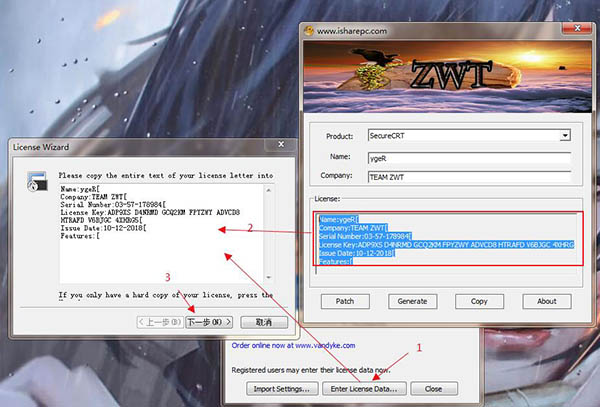 6、安装完成后将数据包中的注册机复制到C:\Program Files\VanDyke Software\Clients目录下并运行,点击patch
