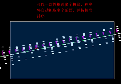 可以一次性框选多个桩线,自动抓取多个断面,并按桩号排序。