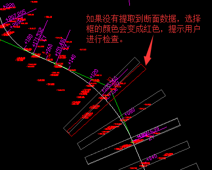 如果没有提取到断面数据,选择框的数据会变成红色,提示用户进行检查