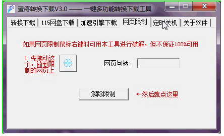 迅雷、快车、旋风、RayFile和115网盘等下载地址转统统利用本工具直接下载,下载小东西(不同的下载地址)不用开启(安装)庞大的迅雷、快车、QQ旋风和RayFile、115网盘软件,不占用任何系统资源。