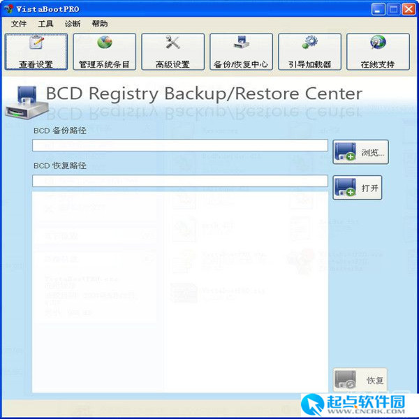 1、最初,使用的VistaBootPRO的理由就是它可以对付难缠的BCD(Boot Configuration Data)存储,而无需使用复杂的命令行操作bcdedit.exe文件。2、另外,VistaBootPRO还具有高级设置功能,可以备份和导出启动加载配置,可以修复Vista启动配置数据并修改相关设置。