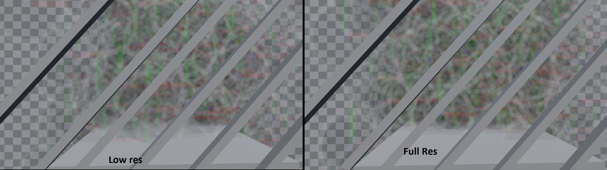 透明材质现在可以使用“Low Resolution”渲染通道名称,使材质可以渲染为四分之一分辨率,并且呈现类似的视觉质量,它对于大型粒子的Overdraw性能很有效。