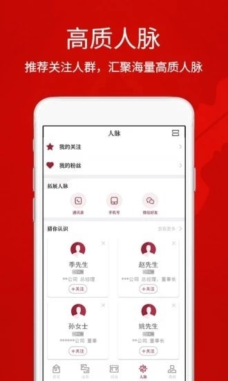 【海量高质人脉】专注目标人群,实名注册+智能推荐+关键字搜索,高效拓展行业人脉;【业内资讯报告】新鲜资讯专家报告,最具价值的业内信息一手掌握;
