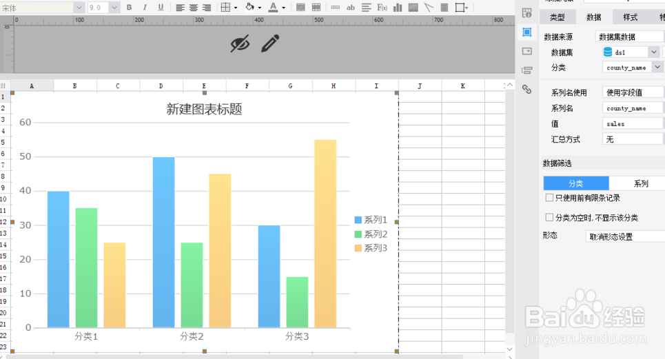 设置柱形图标题字体背景第一步,打开报表设计器,新建数据库查询,可以使用本地数据库创建的表;创建好了可以看到模版数据集,如下图所示: