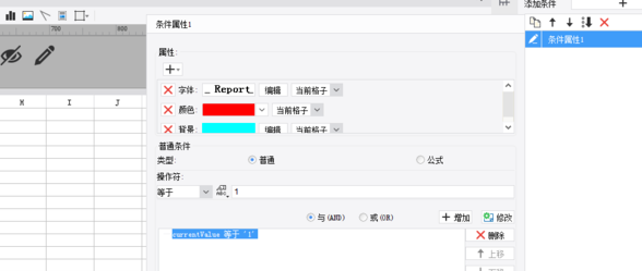 第六步,选中报表中的字段行,设置字段显示间隔色,结果导致重点显示的条件属性也被遮盖,如下图所示: