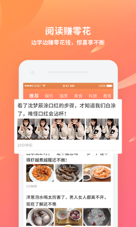 【红包大派送-天天抢代言红包】达人们可以一切成为品牌的代言人,通过自身的影响力,利用微信,qq,微博,贴吧,论坛为品牌带来价值从而获取品牌给的现金红包。【学习阅读赚-有兴趣有零花】资讯内容包含笑话、段子、幽默、糗事,远胜趣头条。为你精选每日新鲜,有料的头条消息,量身定制你的资讯大餐,符合你兴趣的才是好的。