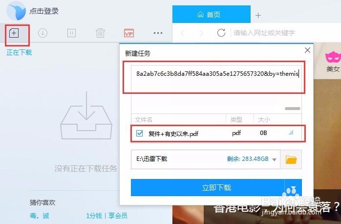 然后我们打开迅雷,选择新建任务,将上面的网址复制到任务列表中,这样迅雷就会识别网址中的下载资源直接显示了,我们点击立即下载就可以了。