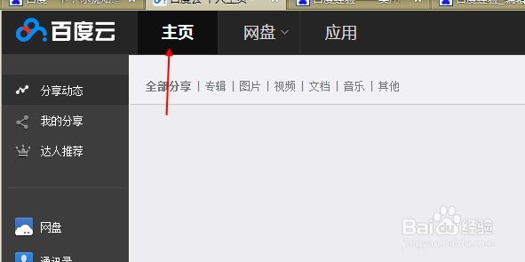 然后在新打开的页面中,显示许多百度网盘的模块,这里点击第一个分享动态模块,如下图所示。