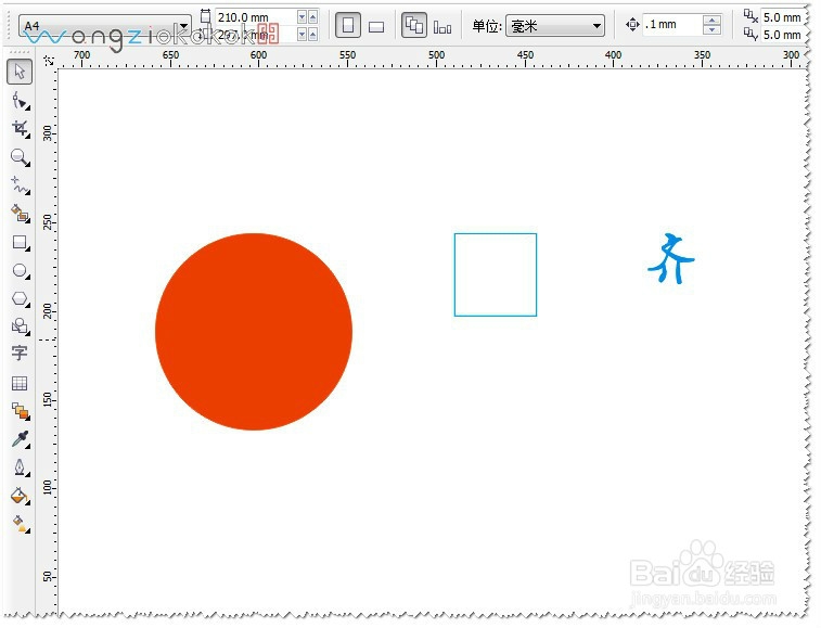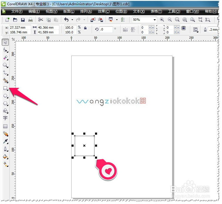 比如:你要把这个矩形在,在该软件的页面中居中怎么办呢?其实很简单选中矩形(对象),在键盘中按P即可。P为页面中居中。如图