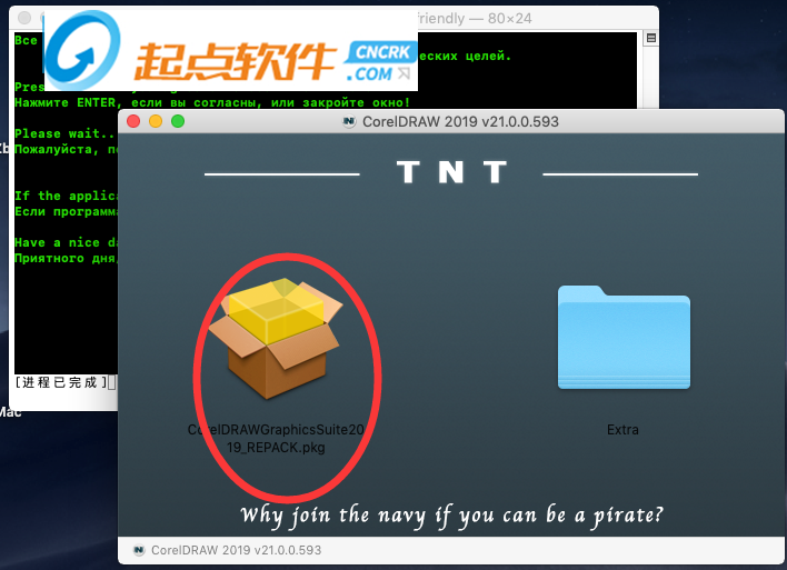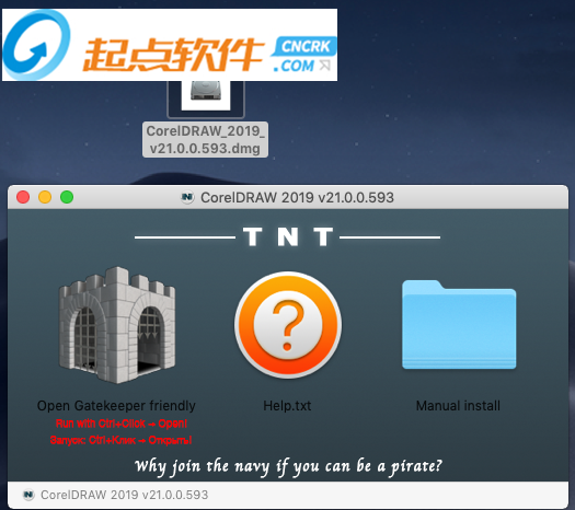 1、本站下载压缩包,双击镜像包CorelDRAW_2019_v21.0.0.593.dmg运行,进入tnt界面