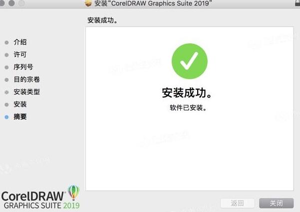 7、然后就会开始软件的安装了,稍等一会儿完成CorelDRAW 2019 Mac版的安装
