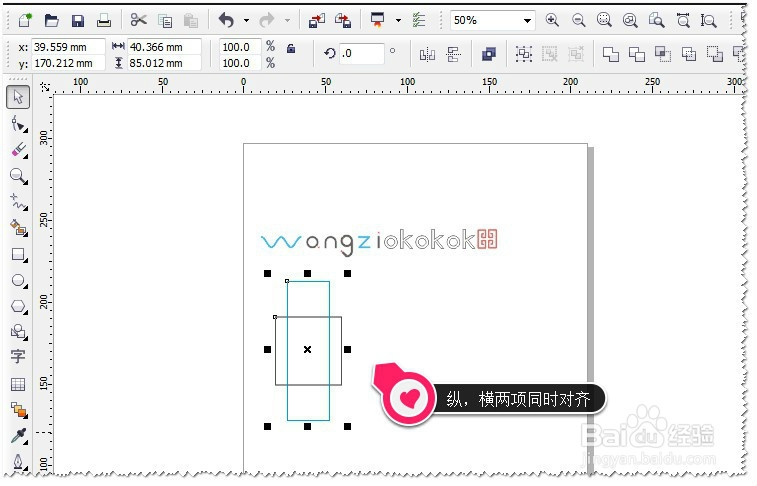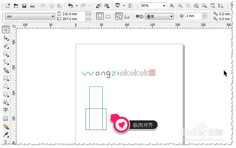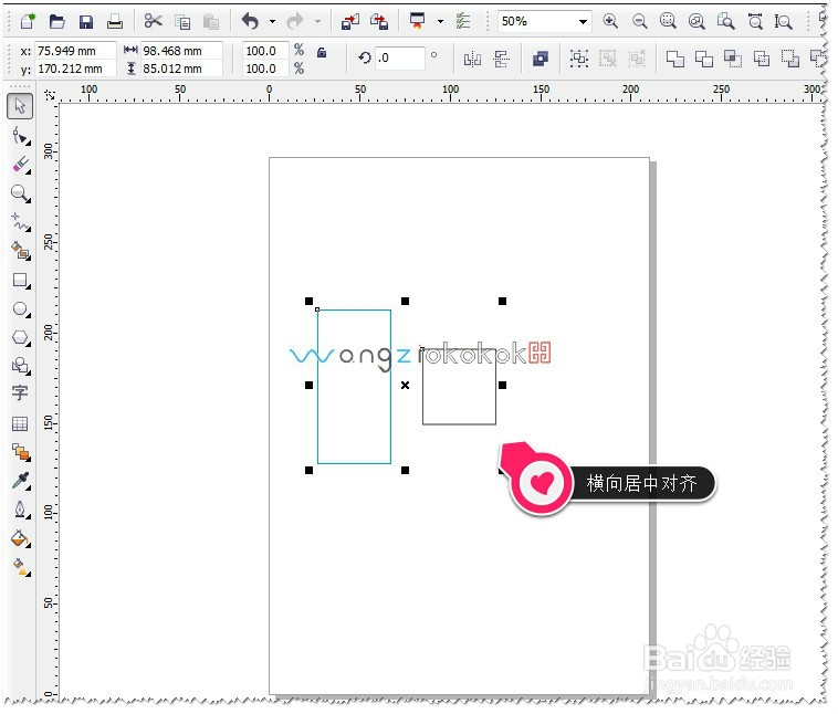 如果想让两个矩形要纵,横两项同时居中对齐怎么办?这个其它也很简单,在键盘中按C再按E即可。如图