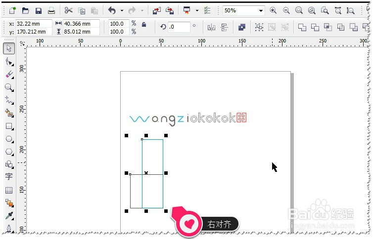 如果想让两个矩形,右边对齐怎么办呢?这个其它也很简单,在键盘中按R即可。R为右边对齐。如图