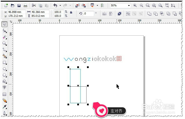 如果想让两个矩形,左边对齐怎么办呢?这个其它也很简单,在键盘中按L即可。L为左边对齐。如图