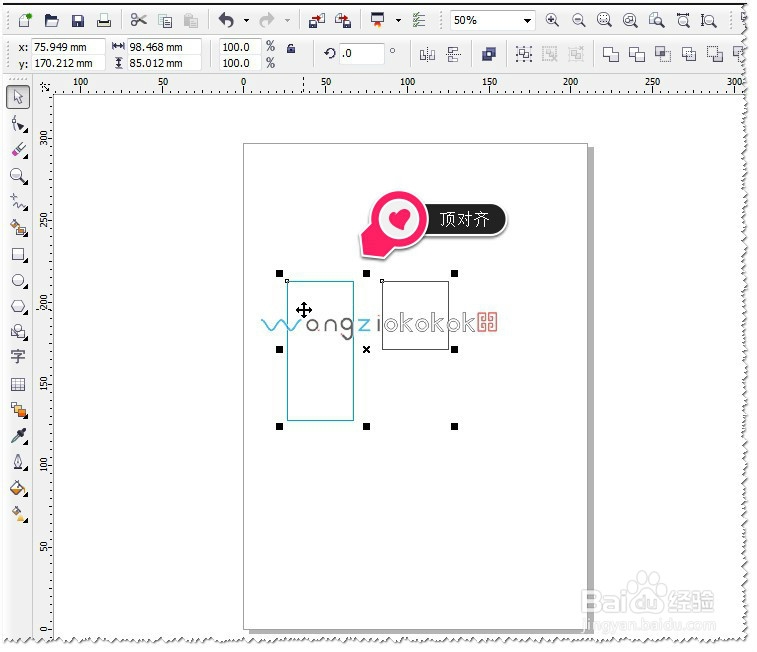 如果想让两个矩形,顶边对齐怎么办呢?这个其它也很简单,在键盘中按T即可。T为顶边对齐。如图