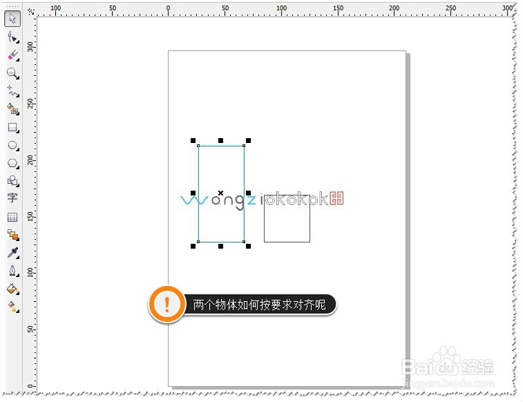 那么如果是两个物体如何按要求对齐呢?比如:两个矩形。如图
