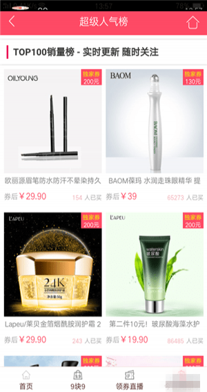 3、销量TOP榜----实时更新精选超值特卖优惠券,券后低至一折起