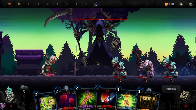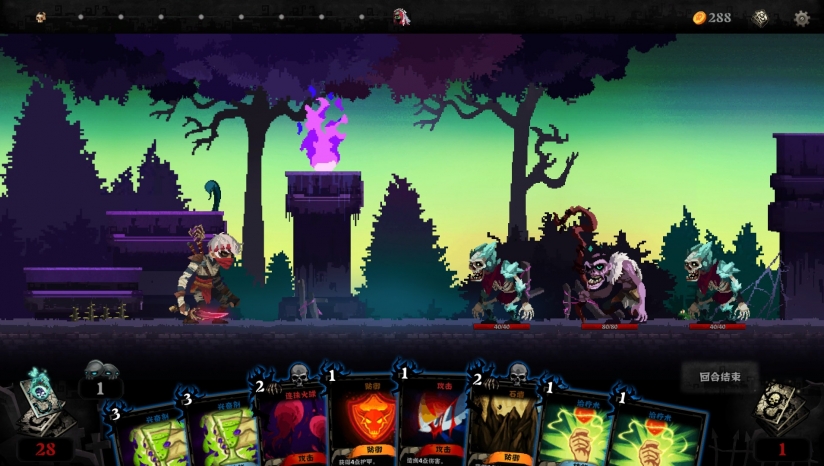 独特的玩法在这里,你的卡牌数量等于你的生命值。每当你受到1点伤害,便弃掉1张牌,卡牌耗尽则游戏失败。