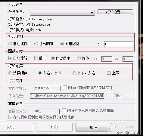 6、设置比例、打印顺序,如果图框选择了偏移了还能设置偏移值