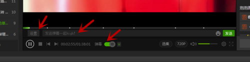 3、留心观察,会发现打开弹幕的同时,视频播放区域的下段多出了一个区域。这个区域就是来发弹幕,以及设置弹幕格式的。点开“设置”,我们可以看到有三个设置,分别是发送设置,播放设置和屏蔽设置。