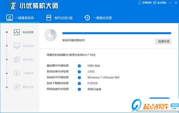 1、系统检测下载软件完软件后正常打开(“一键重装系统”),程序会