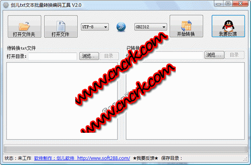 剑儿文本批量转换编码工具,用于批量转换txt文本文档的编码格式。如果有大量的文件,一个一个打开另存为unicode,那是很浪费时间的。剑儿为了方便大家对大量文本文件进行转换编码。该转换器采用文件流读取写入方式,尽量保持了文件的正确无误并采用了多线程技术,后台操作和界面线程分开,防止了转换过程中的界面假死问题。