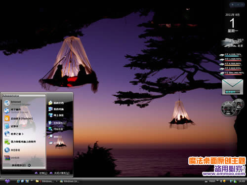 魔法桌面非洲情人树旅馆电脑桌面主题是一款xp、win7双系统主题,壁纸中摇荡在情人树上的烛光爱巢,与海面上绚丽的霞光辉映,浪漫到了极致。七夕将近,借这份浪漫景象,愿天下有情人终成眷属。