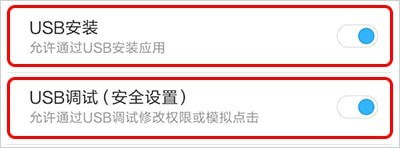注意:如果您是小米和Vivo 系列手机,还需要打开“USB 安装” 和 “USB 调试(安全设置)”,才能确保电脑可以正常控制手机。
