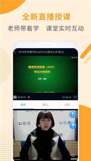 希赛ACP直播课堂,实时上课,实时沟通,实时解答还有实时免费公开课。晚上和周末上课,无需请假,学习工作两不误。直播错过或没有听懂,录播反复学习和理解。直播课堂分散知识体系,分阶段掌握和消化知识点。100+专业讲师线上直播授课,实时互动答疑,更丰富的教学体验。