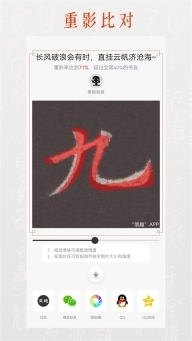 2.借助手机扫描功能,把自己临摹的字帖与碑帖上的范字进行对比,发现二者之间的差异,从而提升书法水平。