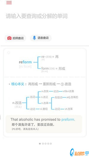 英语解词app是一款将英语单词深入剖析的单词学习应用,英语解词软件词汇丰富,与小初高教材完美同步,方便学生随时在线查单词,在英语解词结合英语单词的音形义发散式学习英语。
