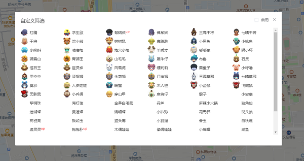 首先在左下角点一次全隐藏,然后在列表中勾选想抓的妖怪,如小狐狸