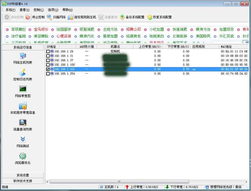 2、接着扫描网络,控制所选主机,然后就可以进行限速设置。