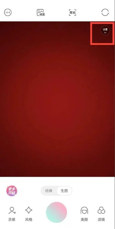 1首先启动轻图写真相机应用,进入拍摄页面后,找到并点击右上角的设置功能入口。