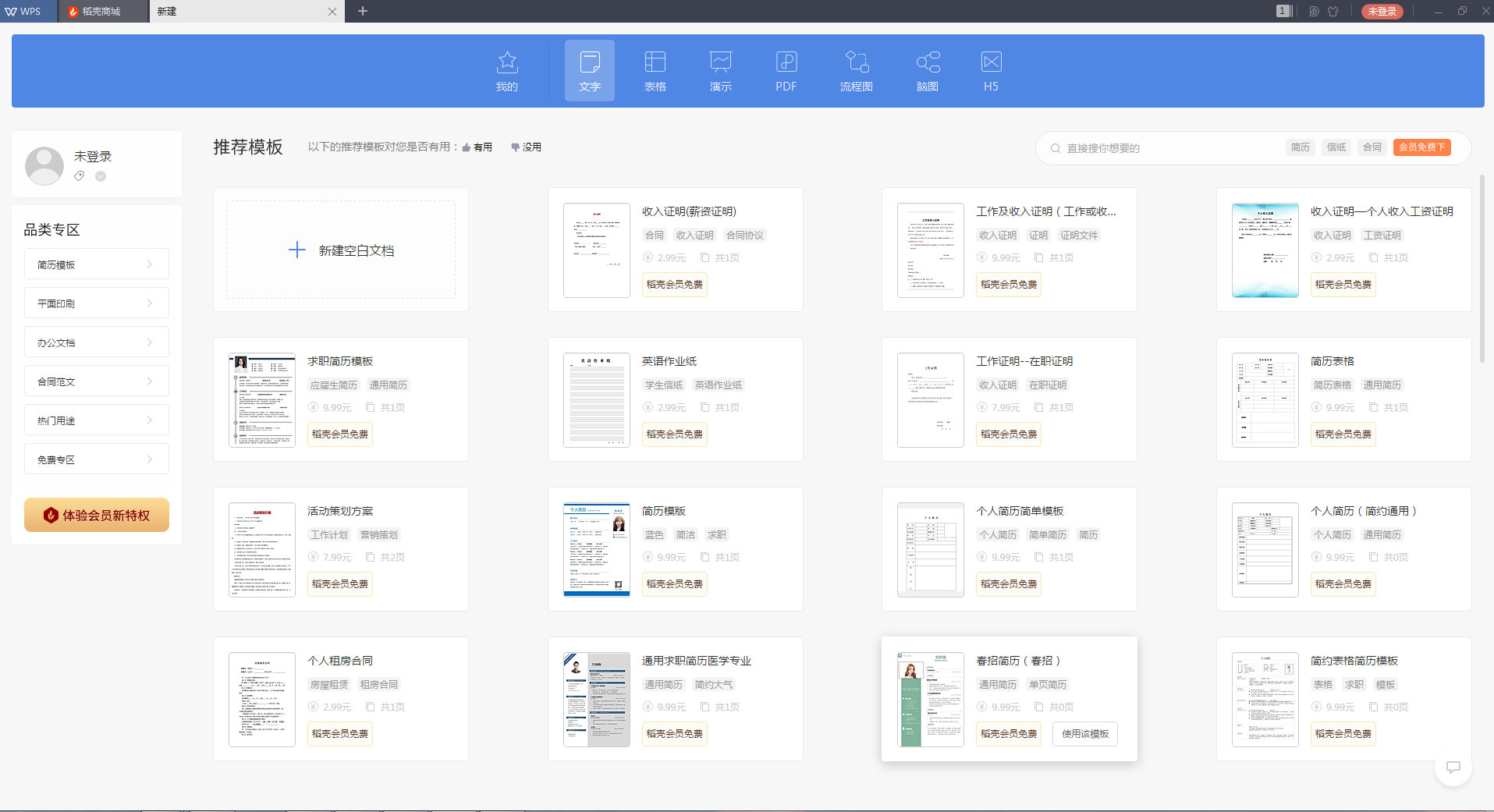 WPS Office 2019的稻壳商城中提供了丰富的模板、范文、图片等各种素材资源,从求职简历到总结计划、合同协议等常见应用文档模板和相关素材都有提供,有了模板的帮忙,你就可以专心攻克其他问题啦!