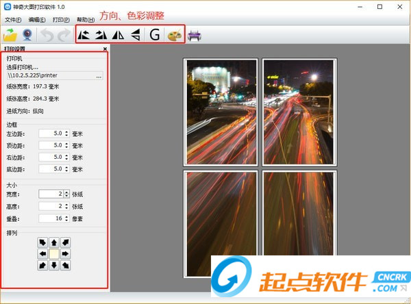 2. 软件左侧可对图片进行详细的设置操作,并且可以实时预览修改设置之后的效果,软件顶部区域可以对图片的方向,色彩进行调整,如下图所示: