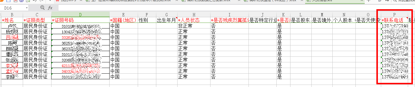 2、在导出的EXCEL人员信息表中对【联系电话】列进行补充或修改;