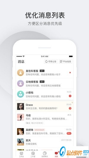 在这里,你可以随时与客人聊天对话、沟通行程。美好而神圣的司导生涯从下载“皇包车-司导端”App开始。