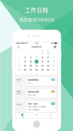 1、工作日程:高效管理你的时间。2、会员管理:会员资料一站查看。