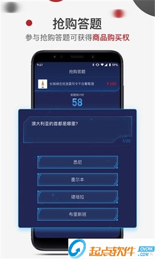 【限时抢购】规定时间内报名参与平台发布的抢购活动,通过趣味答题竞赛获得购买权,获得购买权的用户可选择抢购价购买商品,也可以转让购买权获得收益。【组团抢购】选择心仪产品邀请4名好友一起参与抢购,通过趣味答题竞赛获得购买权,获得购买权的用户可选择抢购价购买商品,也可以转让购买权给好友,增加购物趣味性。