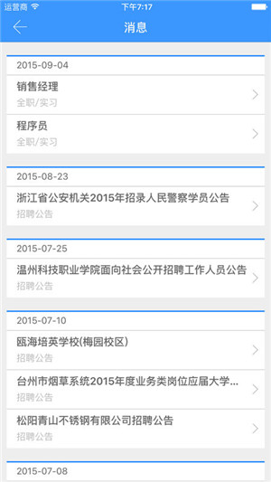 3、及时的消息通知:将最新的校园招聘、就业指导等信息以通知提醒的方式推送到智能手机终端,毕业生可在第一时间掌握最新的就业信息。
