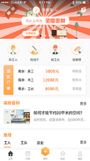 - 找工人名匠大师傅app为所有用户提供工人匹配服务