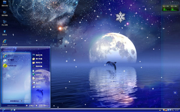 星空的跳跃电脑主题桌面壁纸设计极具精美,银河星空中的海豚如一颗耀眼的恒星,划破时尚的天空,点燃生命的光彩。