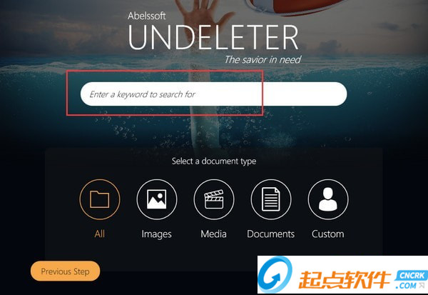 2、输入搜索关键词,选择文件类型,可以全部选择,也可以自定义选择某一个类型,继续点击next