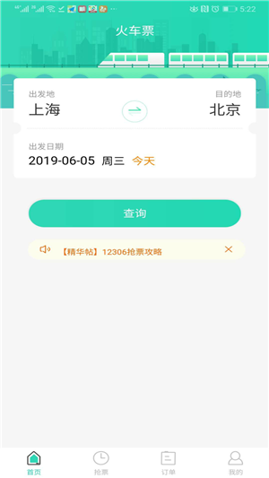 1、实时数据:实时同步12306票源数据,买票快人一步。2、代下订单:24小时托管抢票,电话提醒付票款,省心的抢票方式。
