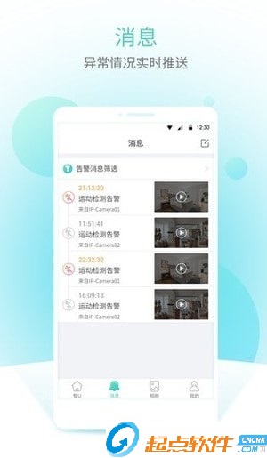* 告警智uapp支持实时接收运动检测告警、告警录像查看、告警消息批量处理;